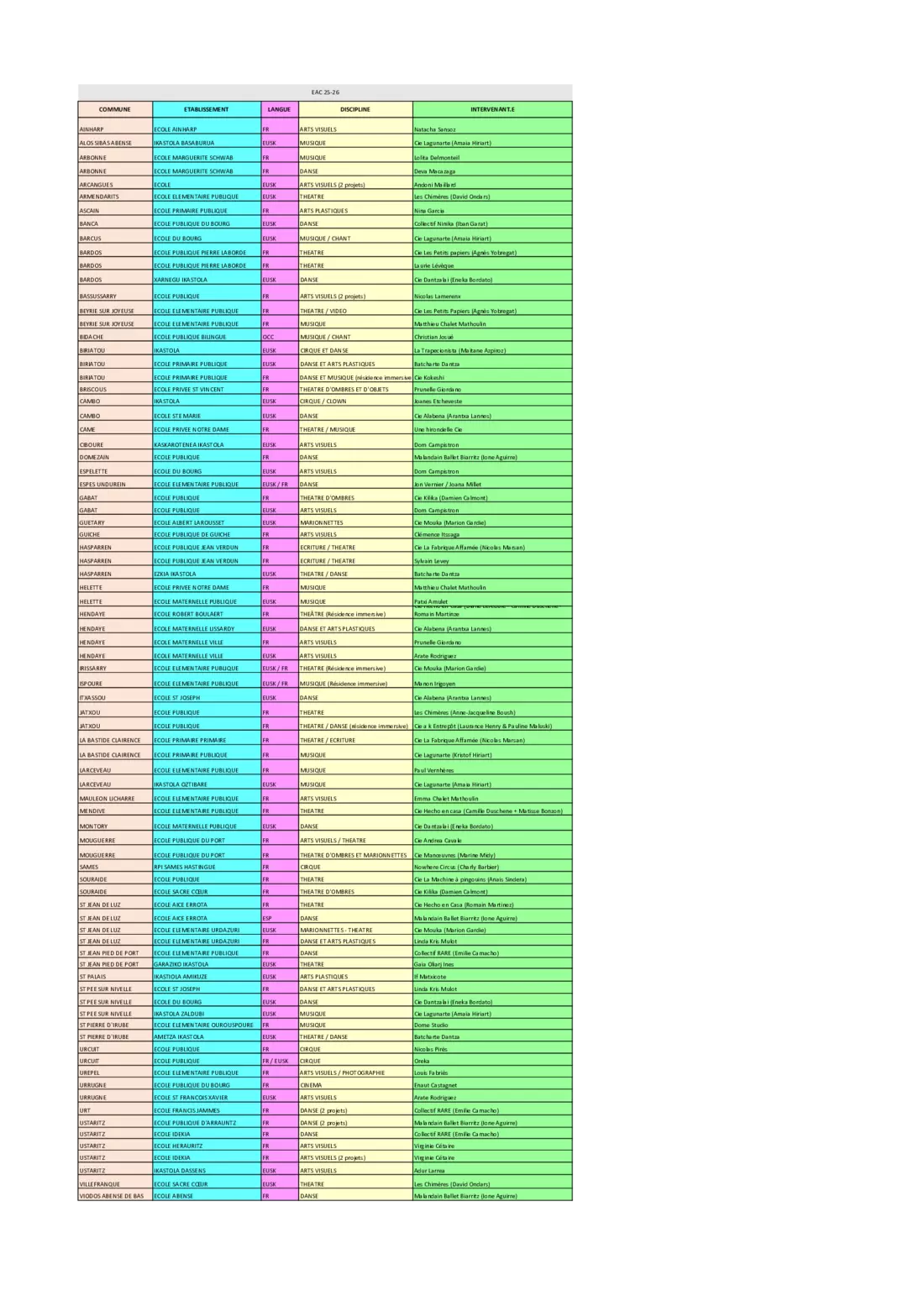 - Pratiques : pratiquer une discipline artistique en classe avec l'accompagnement d'un artiste ou intervenant professionnel