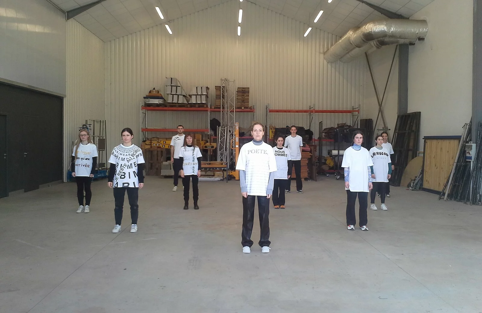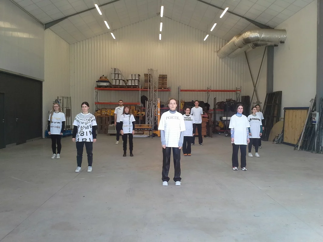 Durant la dernière phase du projet, le groupe s’est rendu à l’Atelier de construction de décors de Louhossoa afin de présenter ses travaux dans une mise en scène théâtralisée proposée par Fran Dussourd, en écho au spectacle en cours de création.