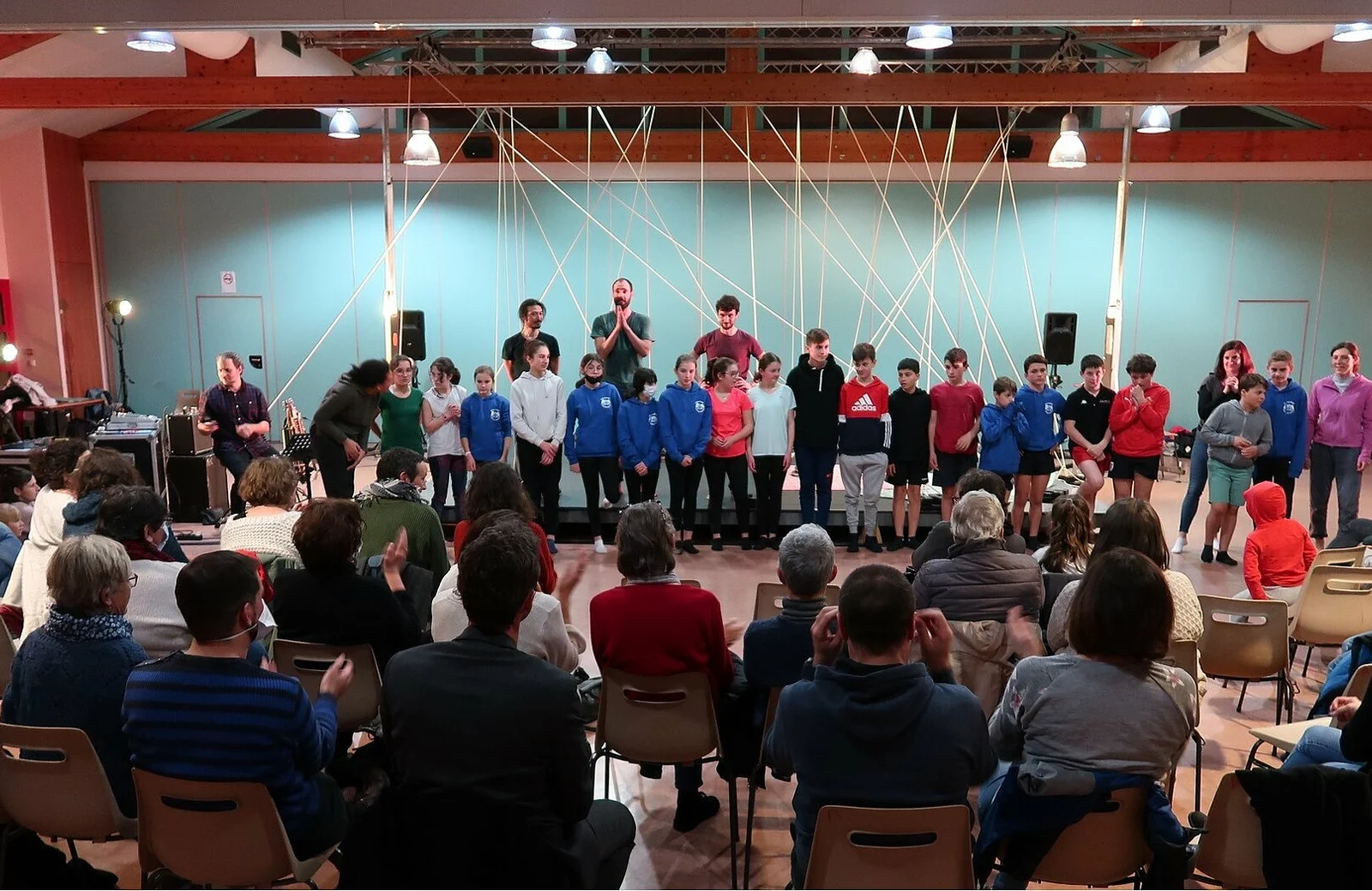 Le jeudi 17 mars a eu lieu, à la salle Plaza Xoko de Saint-Étienne-de-Baïgorry, une restitution de l’atelier de médiation avec les élèves, suivie de la sortie de résidence du spectacle.