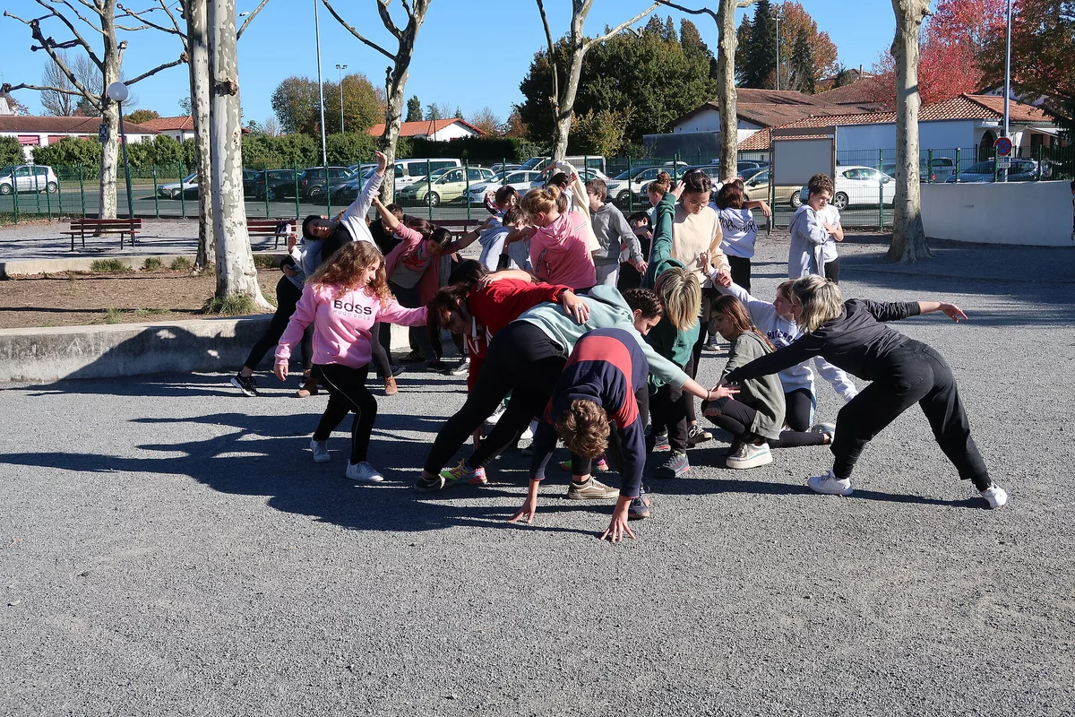 Lors de cette résidence des élèves de 4e ont passé deux semaines à expérimenter des ateliers de danse et d’écriture en lien avec la thématique du spectacle. La compagnie de danse avait alors investi l’établissements avec 6 danseurs/circassiens, une chorégraphe et un écrivain. La qualité des textes produits par les élèves était telle que la directrice artistique de la compagnie a décidé de conserver des textes écrits lors de ces ateliers dans la perspective de les faire déclamer par les élèves mêmes lors de l’accueil du spectacle.