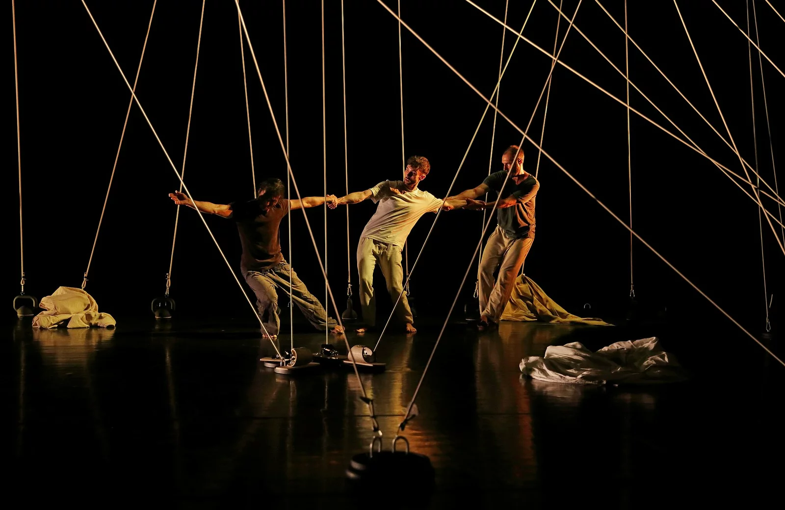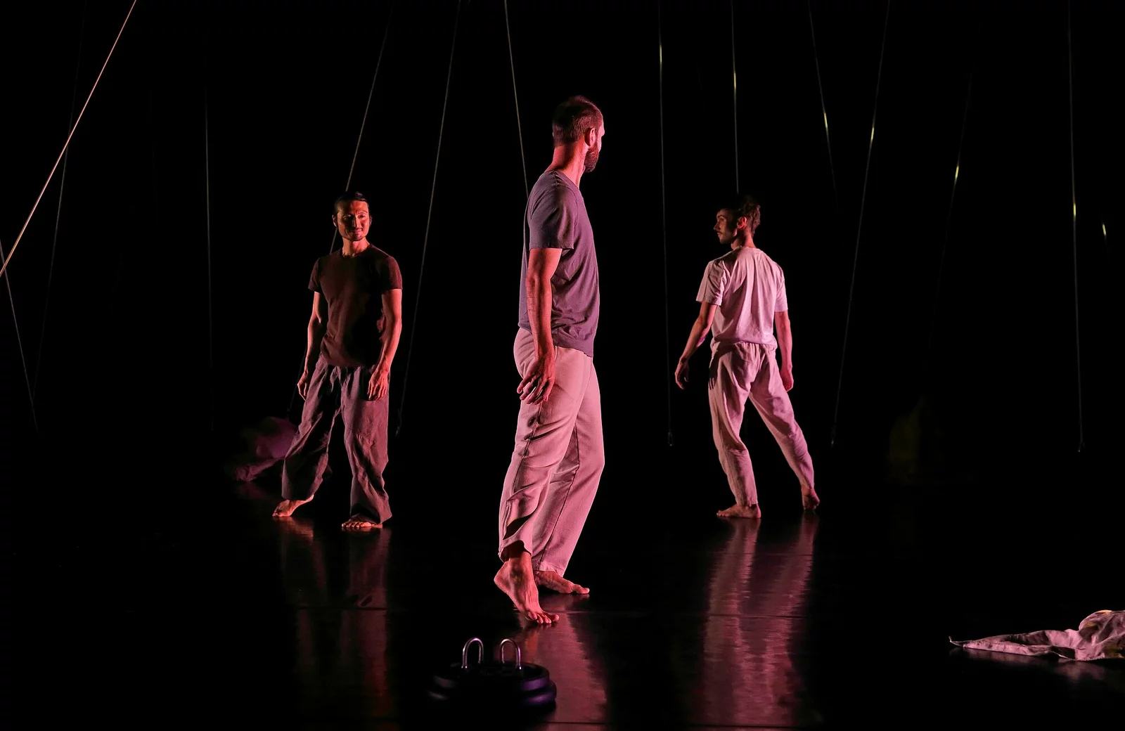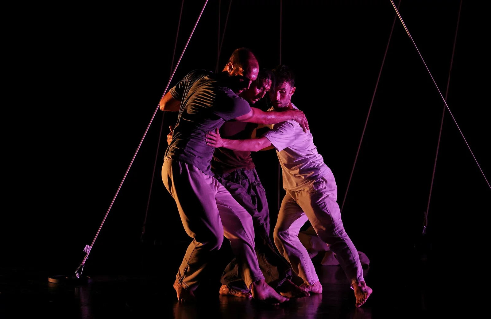 Fuga ! est une création chorégraphique qui explore l’imbrication des corps et leur interdépendance à travers 3 interprètes et un musicien sur scène.
