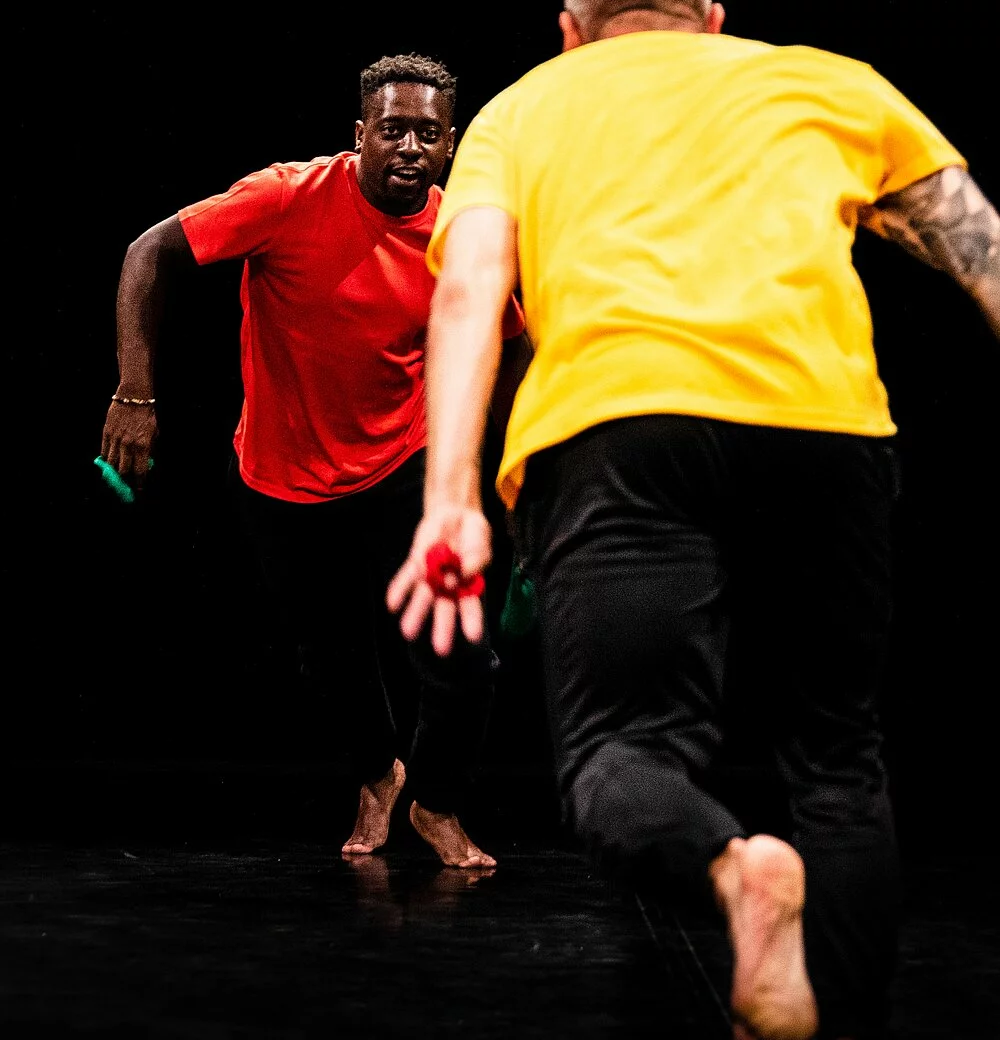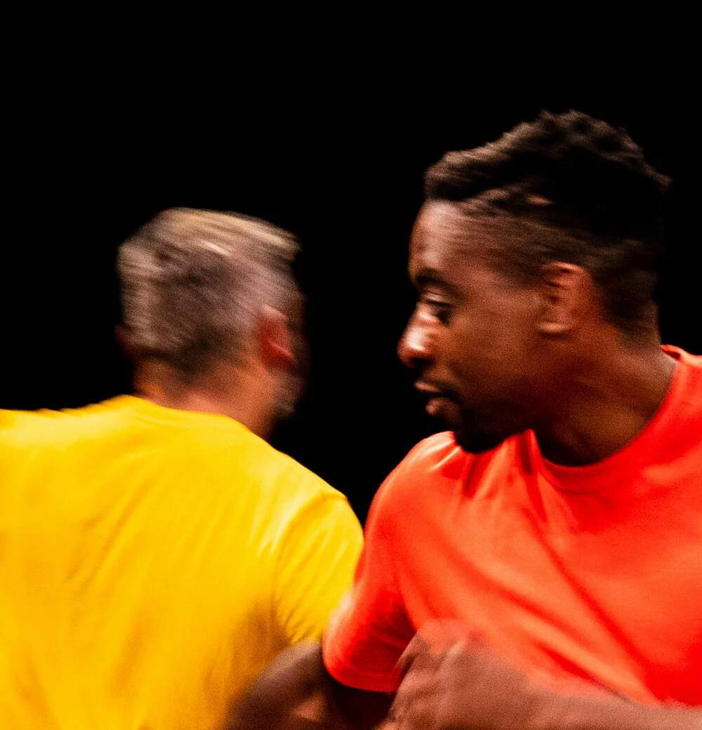 mOts premiers est une joute verbale, un corps à corps. Au plateau, deux garçons : l’un danse : hip hop, break, l’autre dit : lingala, français , anglais... ..