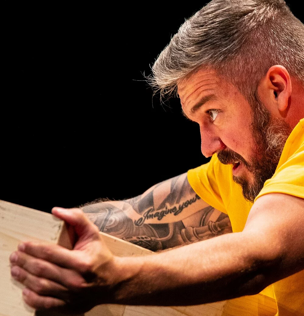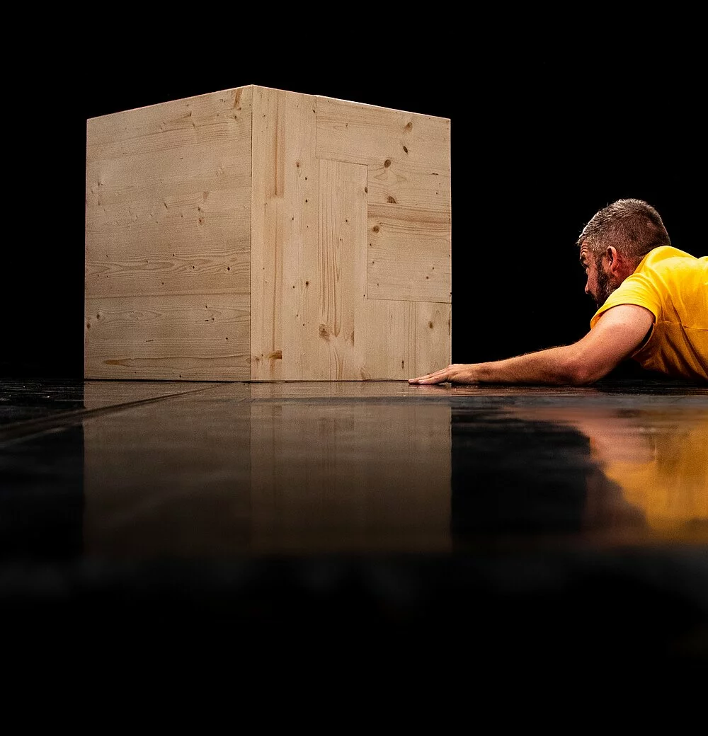 Dans un espace scénographique terrain de jeu ils cherchent et proposent un langage bien à eux. Une langue primaire, un langage premier. Ils détricotent le savoir pour s’approcher au plus près l’un de l’autre. À celui qui trouve le mot, le geste, le dessin le plus juste selon lui. Autant de langages à créer pour rencontrer l’autre.
